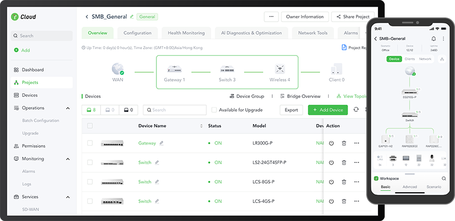 With Lysora Cloud, you gain complete visibility and control over your network. Remotely monitor device health, adjust configurations, and resolve issues from anywhere—all through an intuitive interface that delivers enterprise-grade management right at your fingertips.